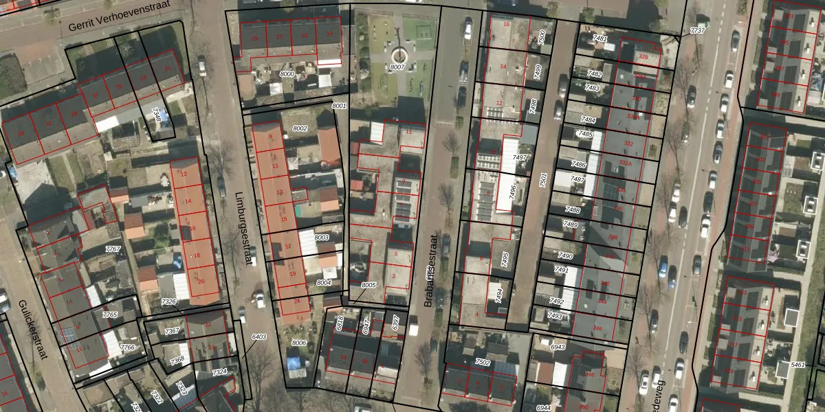 Het perceel waarop Brabantsestraat 7 staat heeft een oppervlakte van 1360 m². Dit is een zeer groot perceel. De perceeloppervlakte wordt geregistreerd door het Kadaster. Gedetailleerde informatie over de maten van dit perceel kunt u vinden in het rapport Kadastrale kaart met maatvoering van Brabantsestraat 7.