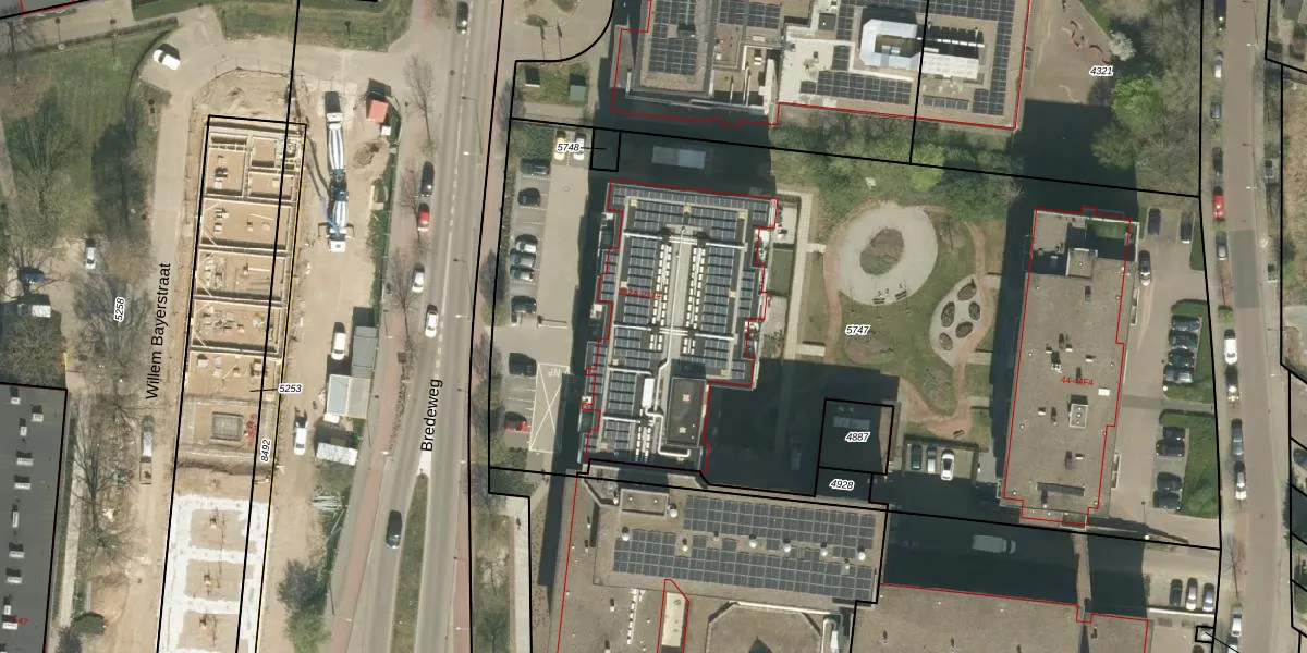 Het perceel waarop Bredeweg 237-D-04 staat heeft een oppervlakte van 5602 m². Dit is een zeer groot perceel. De perceeloppervlakte wordt geregistreerd door het Kadaster. Gedetailleerde informatie over de maten van dit perceel kunt u vinden in het rapport Kadastrale kaart met maatvoering van Bredeweg 237-D-04.