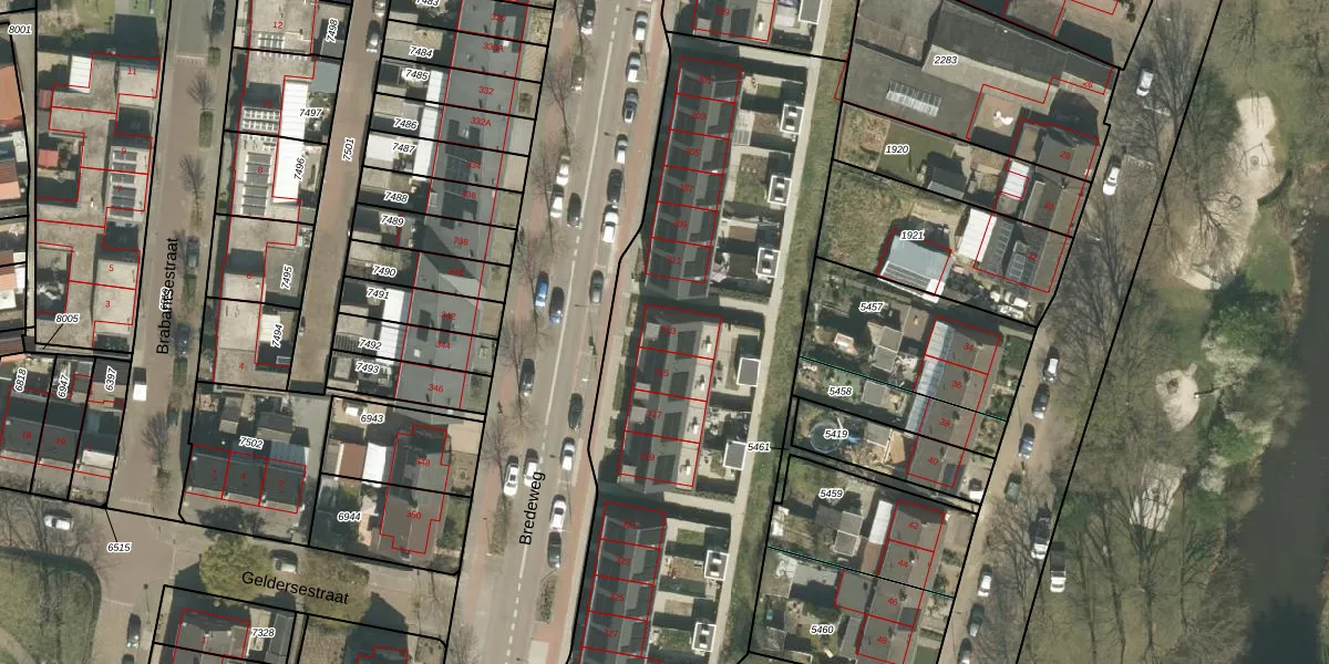 Het perceel waarop Bredeweg 313 staat heeft een oppervlakte van 5153 m². Dit is een zeer groot perceel. De perceeloppervlakte wordt geregistreerd door het Kadaster. Gedetailleerde informatie over de maten van dit perceel kunt u vinden in het rapport Kadastrale kaart met maatvoering van Bredeweg 313.