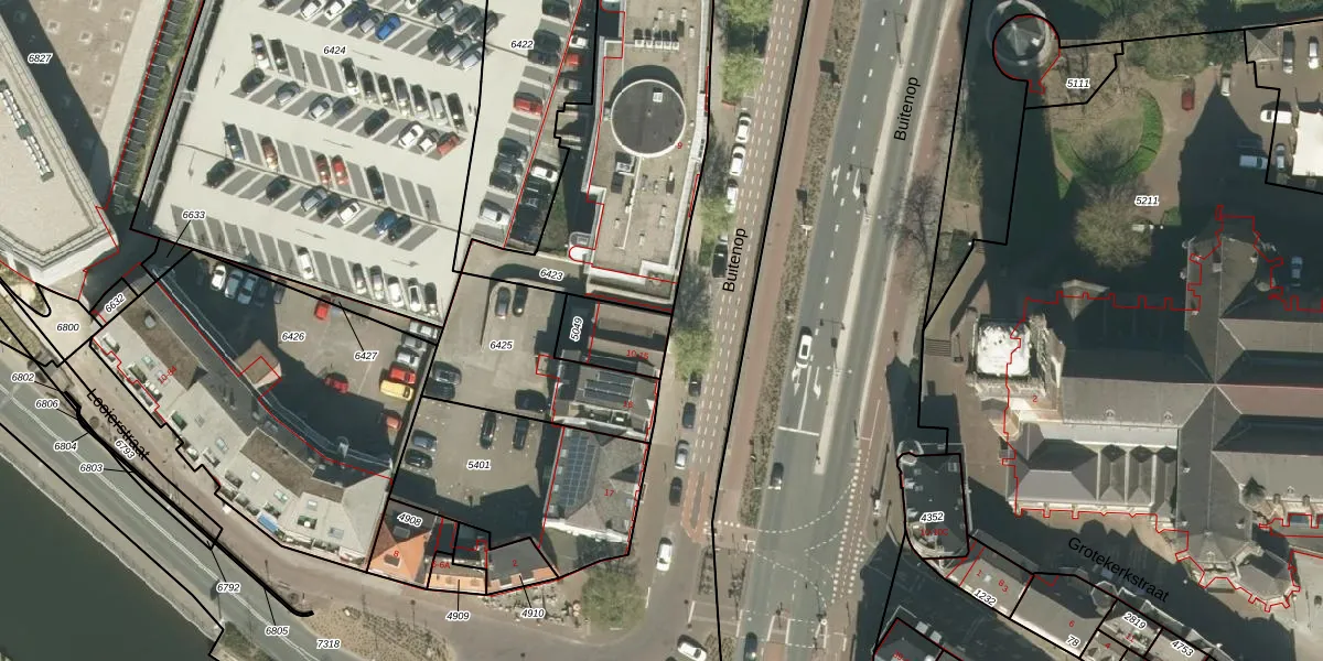 Buitenop 10 is gelegen op kadastraal perceel RMD00C5049. Deze kadastrale aanduiding is uniek en wordt gebruikt door het Kadaster om eigendomsrechten en andere zakelijke rechten vast te leggen. Het perceel maakt onderdeel uit van de kadastrale gemeente Roermond.