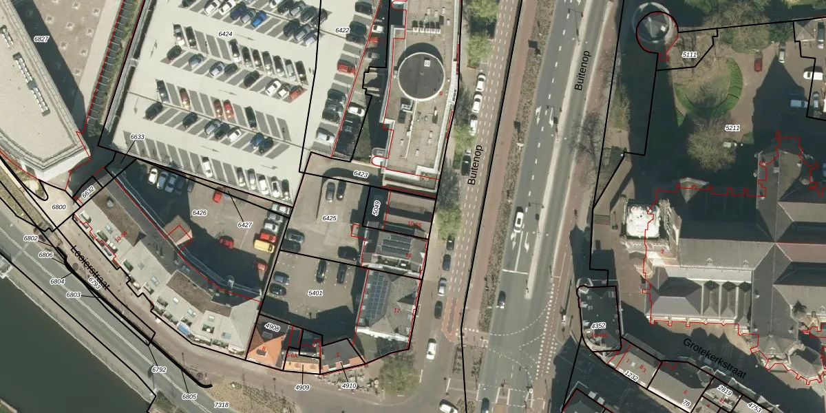 Buitenop 12 is gelegen op kadastraal perceel RMD00C5049. Deze kadastrale aanduiding is uniek en wordt gebruikt door het Kadaster om eigendomsrechten en andere zakelijke rechten vast te leggen. Het perceel maakt onderdeel uit van de kadastrale gemeente Roermond.
