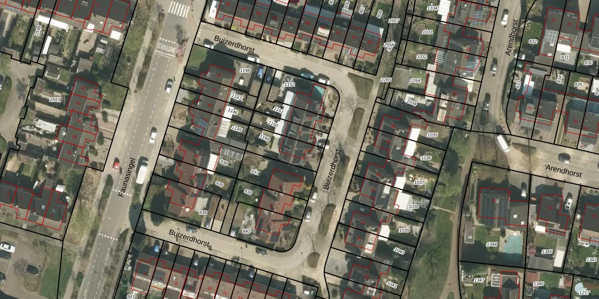 Gebruik de zoekbalk of klik op een perceel voor informatie over de adressen binnen dit perceel.