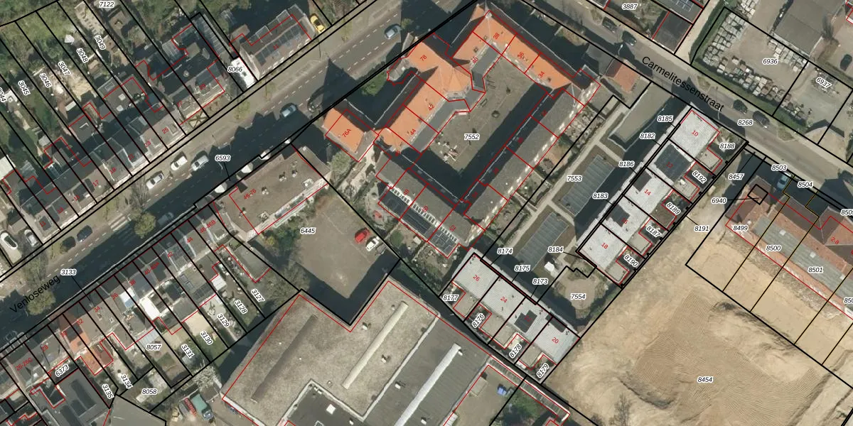 Carmelitessenstraat 50 is gelegen op kadastraal perceel RMD00B7552. Deze kadastrale aanduiding is uniek en wordt gebruikt door het Kadaster om eigendomsrechten en andere zakelijke rechten vast te leggen. Het perceel maakt onderdeel uit van de kadastrale gemeente Roermond.