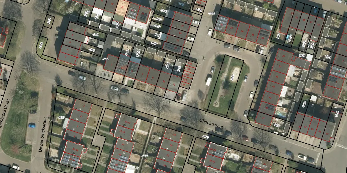 Chopinstraat 13 is gelegen op kadastraal perceel RMD00F4980. Deze kadastrale aanduiding is uniek en wordt gebruikt door het Kadaster om eigendomsrechten en andere zakelijke rechten vast te leggen. Het perceel maakt onderdeel uit van de kadastrale gemeente Roermond.