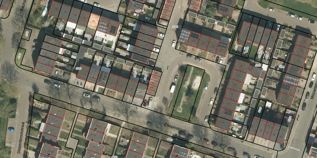 Het perceel waarop Chopinstraat 13-4 staat heeft een oppervlakte van 2405 m². Dit is een zeer groot perceel. De perceeloppervlakte wordt geregistreerd door het Kadaster. Gedetailleerde informatie over de maten van dit perceel kunt u vinden in het rapport Kadastrale kaart met maatvoering van Chopinstraat 13-4.
