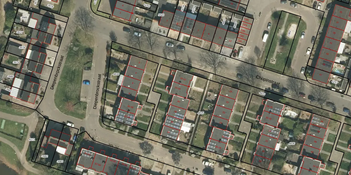Chopinstraat 14 is gelegen op kadastraal perceel RMD00F4835. Deze kadastrale aanduiding is uniek en wordt gebruikt door het Kadaster om eigendomsrechten en andere zakelijke rechten vast te leggen. Het perceel maakt onderdeel uit van de kadastrale gemeente Roermond.
