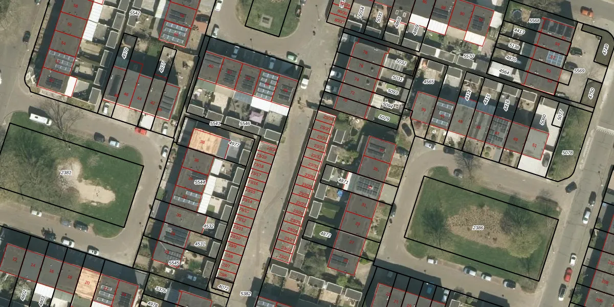 Het perceel waarop Chopinstraat 23-32 staat heeft een oppervlakte van 5056 m². Dit is een zeer groot perceel. De perceeloppervlakte wordt geregistreerd door het Kadaster. Gedetailleerde informatie over de maten van dit perceel kunt u vinden in het rapport Kadastrale kaart met maatvoering van Chopinstraat 23-32.