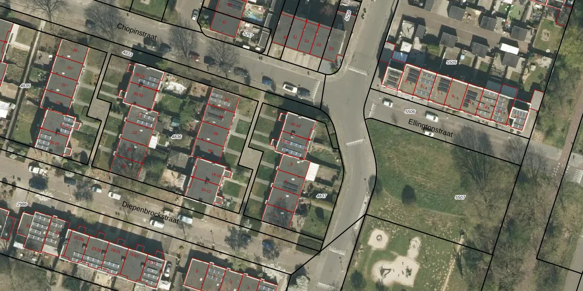 Het perceel waarop Chopinstraat 48 staat heeft een oppervlakte van 1124 m². Dit is een zeer groot perceel. De perceeloppervlakte wordt geregistreerd door het Kadaster. Gedetailleerde informatie over de maten van dit perceel kunt u vinden in het rapport Kadastrale kaart met maatvoering van Chopinstraat 48.