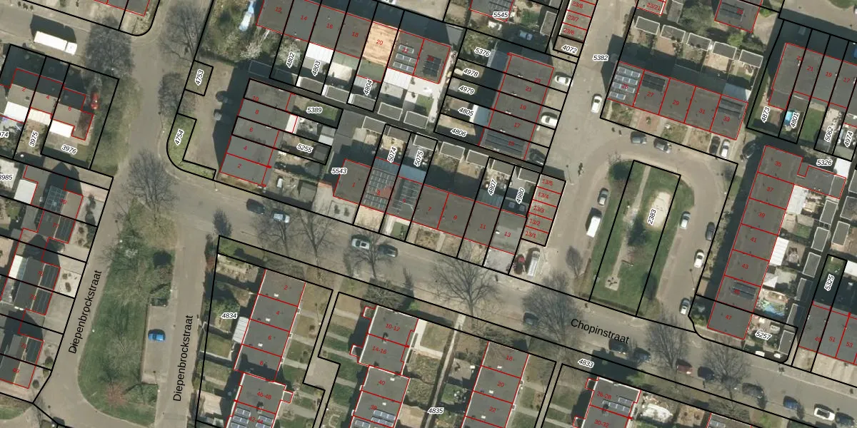 Het perceel waarop Chopinstraat 7 staat heeft een oppervlakte van 2405 m². Dit is een zeer groot perceel. De perceeloppervlakte wordt geregistreerd door het Kadaster. Gedetailleerde informatie over de maten van dit perceel kunt u vinden in het rapport Kadastrale kaart met maatvoering van Chopinstraat 7.
