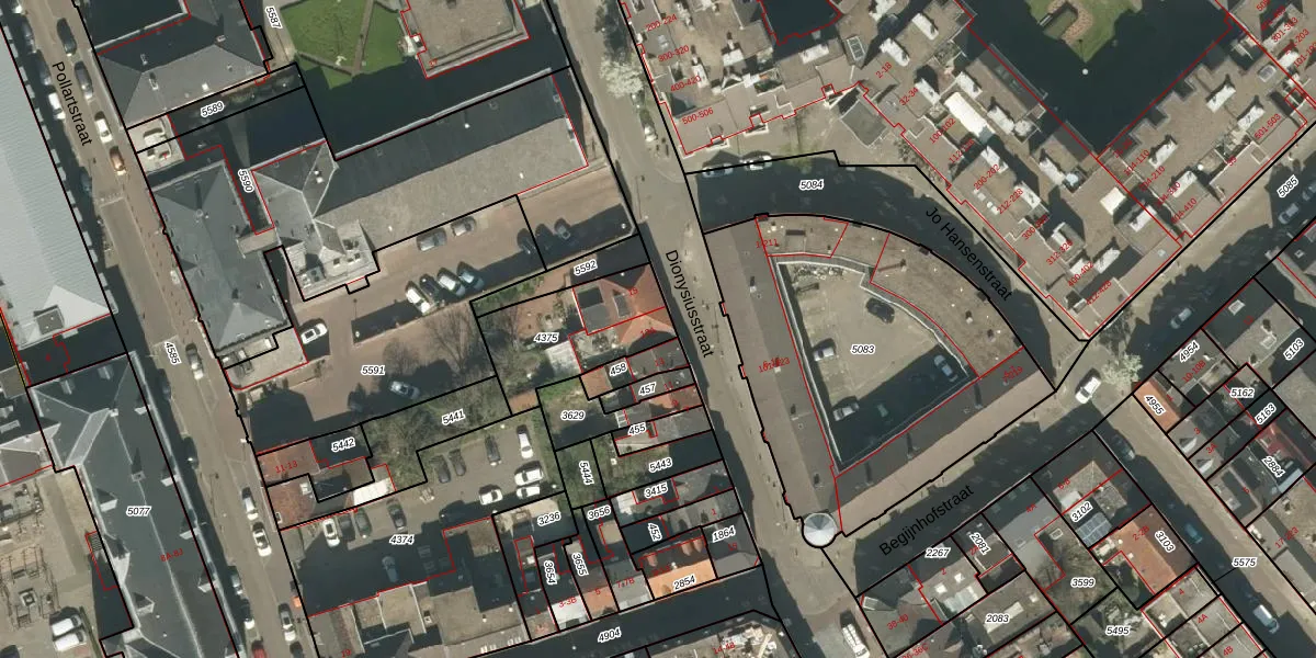 Het perceel waarop Dionysiusstraat 13-A staat heeft een oppervlakte van 366 m². Dit is een groot perceel. De perceeloppervlakte wordt geregistreerd door het Kadaster. Gedetailleerde informatie over de maten van dit perceel kunt u vinden in het rapport Kadastrale kaart met maatvoering van Dionysiusstraat 13-A.