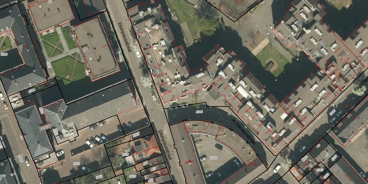 Het perceel waarop Dionysiusstraat 20 staat heeft een oppervlakte van 1,3 ha. Dit is een zeer groot perceel. De perceeloppervlakte wordt geregistreerd door het Kadaster. Gedetailleerde informatie over de maten van dit perceel kunt u vinden in het rapport Kadastrale kaart met maatvoering van Dionysiusstraat 20.
