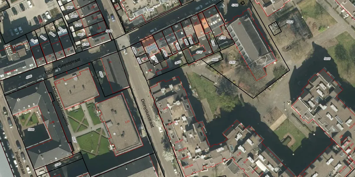 Dionysiusstraat 204 is gelegen op kadastraal perceel RMD00D5655. Deze kadastrale aanduiding is uniek en wordt gebruikt door het Kadaster om eigendomsrechten en andere zakelijke rechten vast te leggen. Het perceel maakt onderdeel uit van de kadastrale gemeente Roermond.