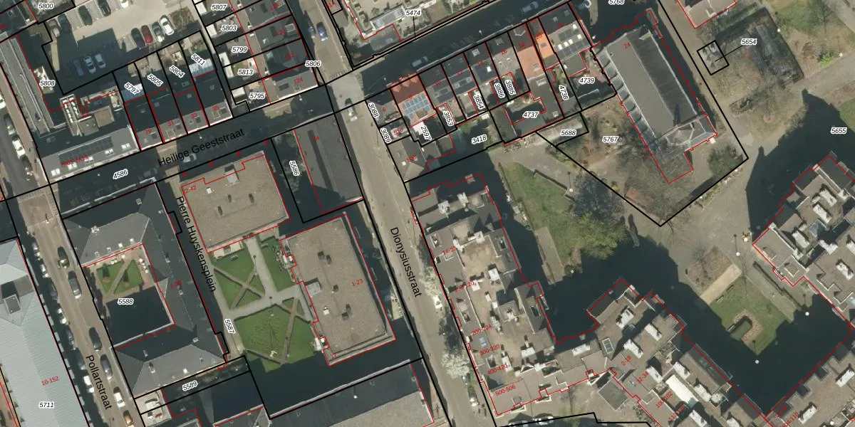 Het perceel waarop Dionysiusstraat 206 staat heeft een oppervlakte van 1,3 ha. Dit is een zeer groot perceel. De perceeloppervlakte wordt geregistreerd door het Kadaster. Gedetailleerde informatie over de maten van dit perceel kunt u vinden in het rapport Kadastrale kaart met maatvoering van Dionysiusstraat 206.