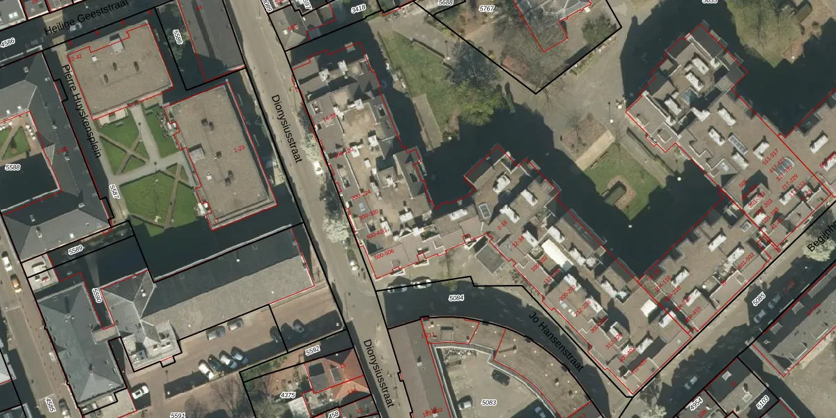 Het perceel waarop Dionysiusstraat 222 staat heeft een oppervlakte van 1,3 ha. Dit is een zeer groot perceel. De perceeloppervlakte wordt geregistreerd door het Kadaster. Gedetailleerde informatie over de maten van dit perceel kunt u vinden in het rapport Kadastrale kaart met maatvoering van Dionysiusstraat 222.