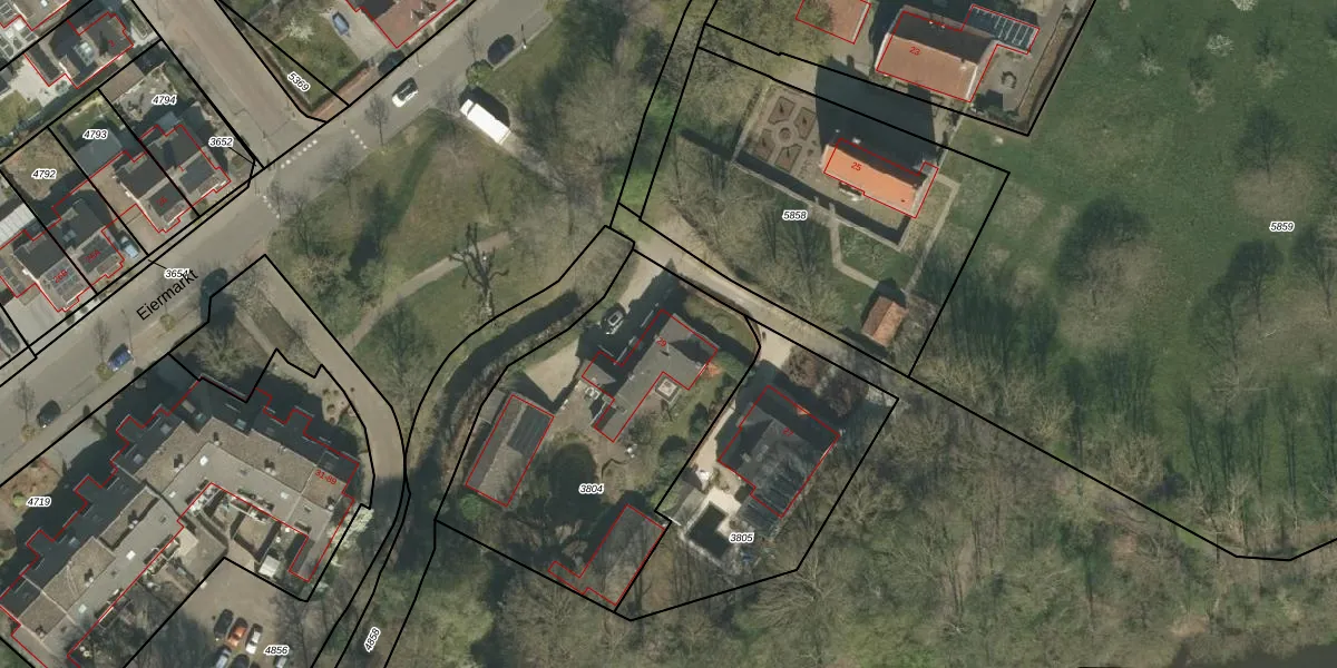 Eiermarkt 29 is gelegen op kadastraal perceel RMD00F3804. Deze kadastrale aanduiding is uniek en wordt gebruikt door het Kadaster om eigendomsrechten en andere zakelijke rechten vast te leggen. Het perceel maakt onderdeel uit van de kadastrale gemeente Roermond.