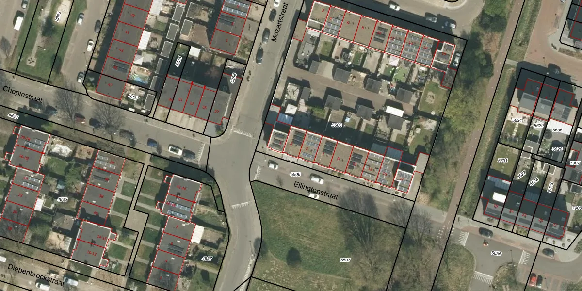 Ellingtonstraat 3 is gelegen op kadastraal perceel RMD00F5505. Deze kadastrale aanduiding is uniek en wordt gebruikt door het Kadaster om eigendomsrechten en andere zakelijke rechten vast te leggen. Het perceel maakt onderdeel uit van de kadastrale gemeente Roermond.