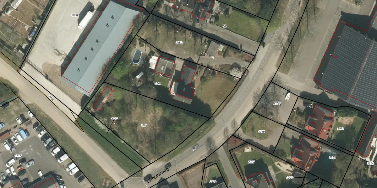Het perceel waarop Elmpterweg 35 staat heeft een oppervlakte van 1570 m². Dit is een zeer groot perceel. De perceeloppervlakte wordt geregistreerd door het Kadaster. Gedetailleerde informatie over de maten van dit perceel kunt u vinden in het rapport Kadastrale kaart met maatvoering van Elmpterweg 35.