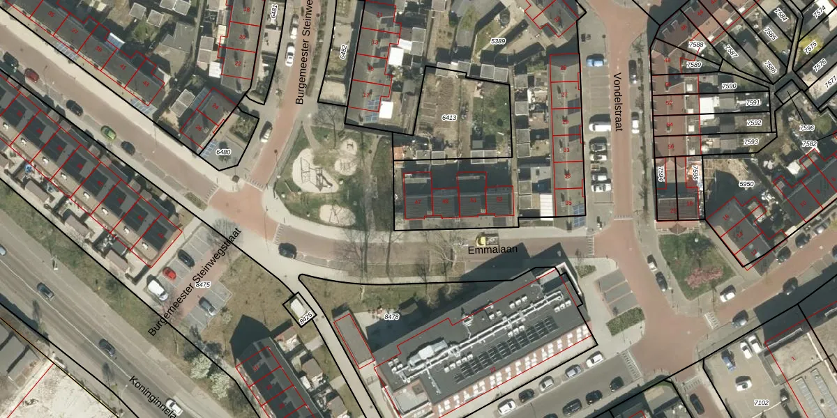 Het perceel waarop Emmalaan 47 staat heeft een oppervlakte van 2960 m². Dit is een zeer groot perceel. De perceeloppervlakte wordt geregistreerd door het Kadaster. Gedetailleerde informatie over de maten van dit perceel kunt u vinden in het rapport Kadastrale kaart met maatvoering van Emmalaan 47.