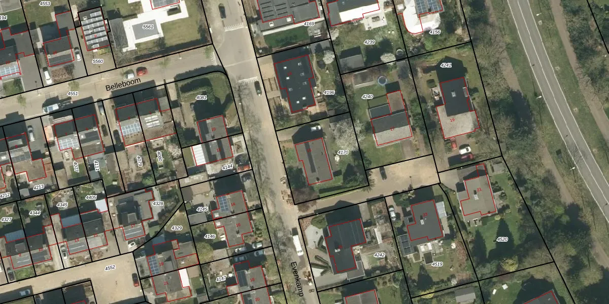 Het perceel waarop Evenkamp 15 staat heeft een oppervlakte van 625 m². Dit is een groot perceel. De perceeloppervlakte wordt geregistreerd door het Kadaster. Gedetailleerde informatie over de maten van dit perceel kunt u vinden in het rapport Kadastrale kaart met maatvoering van Evenkamp 15.