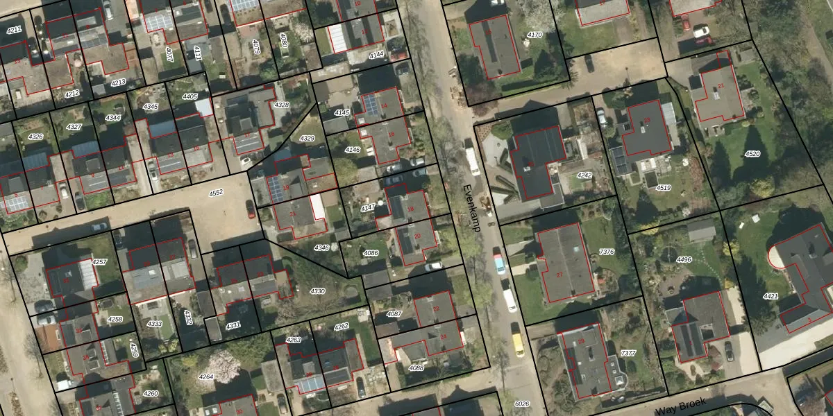 Het perceel waarop Evenkamp 18 staat heeft een oppervlakte van 306 m². Dit is een groot perceel. De perceeloppervlakte wordt geregistreerd door het Kadaster. Gedetailleerde informatie over de maten van dit perceel kunt u vinden in het rapport Kadastrale kaart met maatvoering van Evenkamp 18.