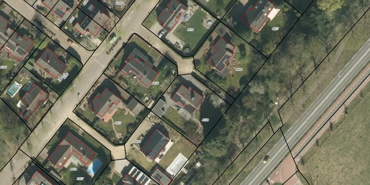 Het perceel waarop Evenkamp 51 staat heeft een oppervlakte van 920 m². Dit is een groot perceel. De perceeloppervlakte wordt geregistreerd door het Kadaster. Gedetailleerde informatie over de maten van dit perceel kunt u vinden in het rapport Kadastrale kaart met maatvoering van Evenkamp 51.