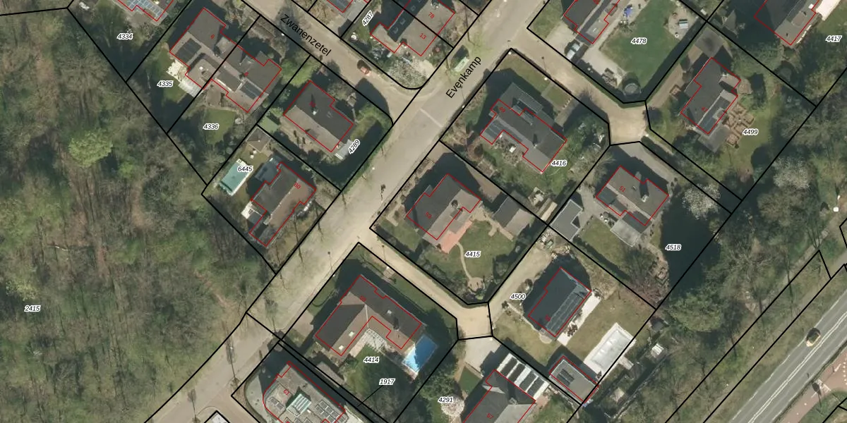 Gebruik de zoekbalk of klik op een perceel voor informatie over de adressen binnen dit perceel.