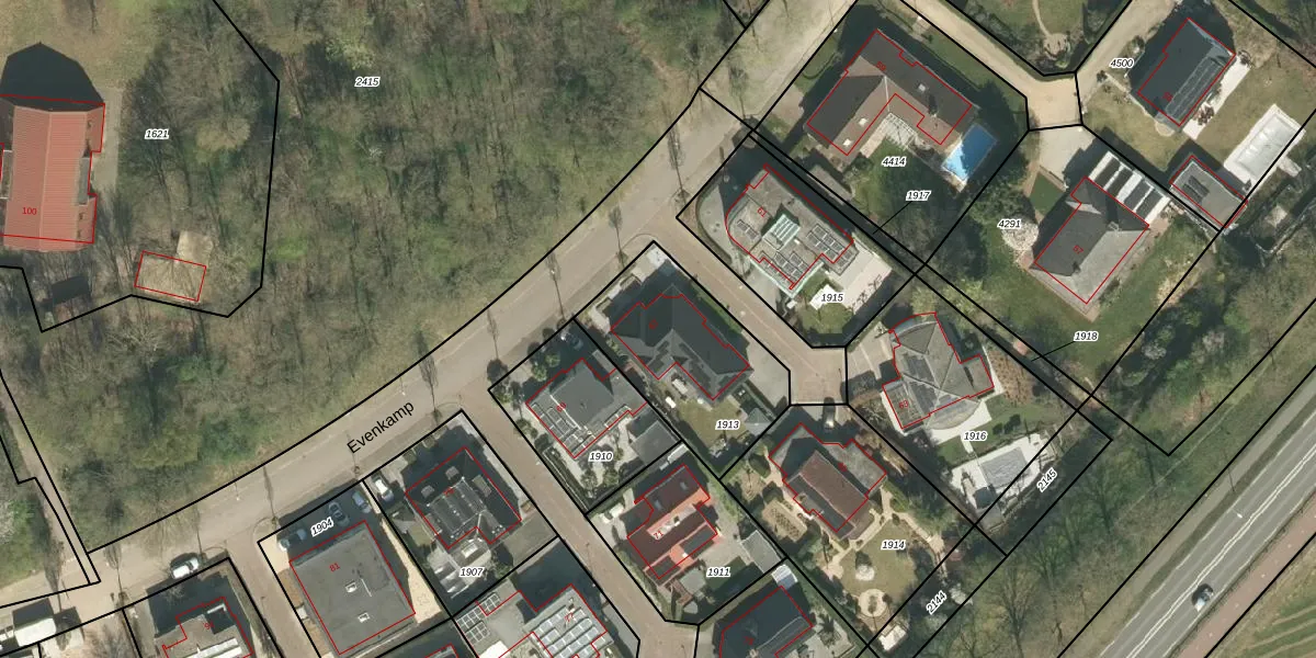 Het perceel waarop Evenkamp 67 staat heeft een oppervlakte van 585 m². Dit is een groot perceel. De perceeloppervlakte wordt geregistreerd door het Kadaster. Gedetailleerde informatie over de maten van dit perceel kunt u vinden in het rapport Kadastrale kaart met maatvoering van Evenkamp 67.