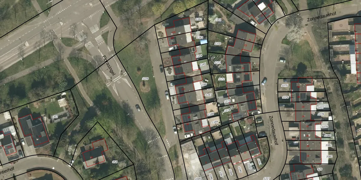 Gebruik de zoekbalk of klik op een perceel voor informatie over de adressen binnen dit perceel.