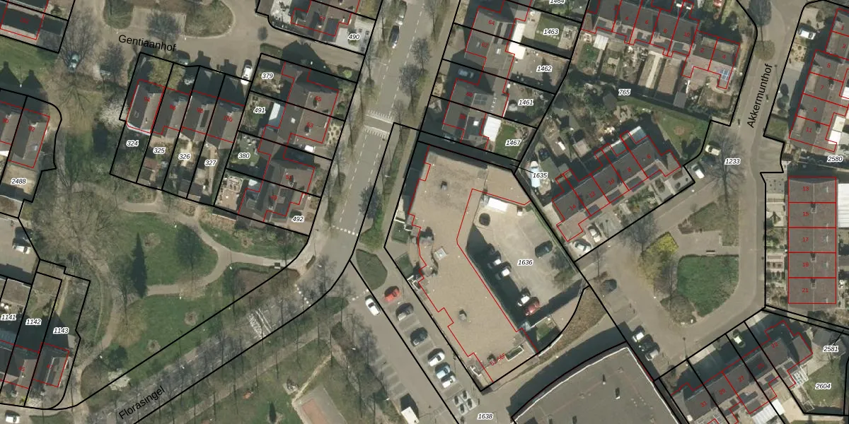 Florasingel 54-E is gelegen op kadastraal perceel RMD00H1636. Deze kadastrale aanduiding is uniek en wordt gebruikt door het Kadaster om eigendomsrechten en andere zakelijke rechten vast te leggen. Het perceel maakt onderdeel uit van de kadastrale gemeente Roermond.