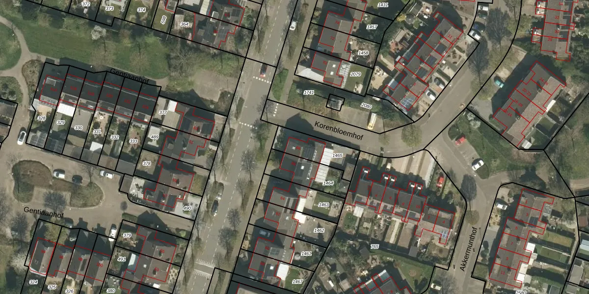 Gebruik de zoekbalk of klik op een perceel voor informatie over de adressen binnen dit perceel.