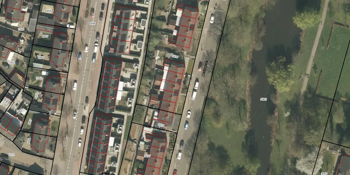 Het perceel waarop Gebroek 62 staat heeft een oppervlakte van 1942 m². Dit is een zeer groot perceel. De perceeloppervlakte wordt geregistreerd door het Kadaster. Gedetailleerde informatie over de maten van dit perceel kunt u vinden in het rapport Kadastrale kaart met maatvoering van Gebroek 62.