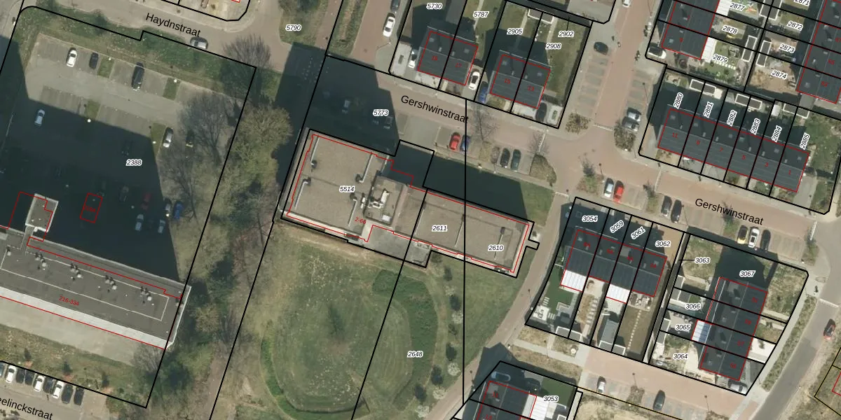 Het perceel waarop Gershwinstraat 26 staat heeft een oppervlakte van 730 m². Dit is een groot perceel. De perceeloppervlakte wordt geregistreerd door het Kadaster. Gedetailleerde informatie over de maten van dit perceel kunt u vinden in het rapport Kadastrale kaart met maatvoering van Gershwinstraat 26.