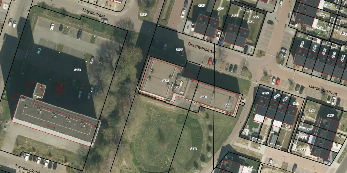 Gershwinstraat 36 is gelegen op kadastraal perceel RMD00F5514. Deze kadastrale aanduiding is uniek en wordt gebruikt door het Kadaster om eigendomsrechten en andere zakelijke rechten vast te leggen. Het perceel maakt onderdeel uit van de kadastrale gemeente Roermond.