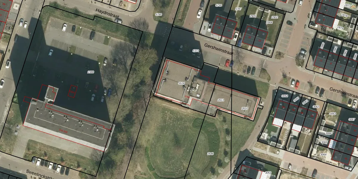 Gershwinstraat 46 is gelegen op kadastraal perceel RMD00F5514. Deze kadastrale aanduiding is uniek en wordt gebruikt door het Kadaster om eigendomsrechten en andere zakelijke rechten vast te leggen. Het perceel maakt onderdeel uit van de kadastrale gemeente Roermond.