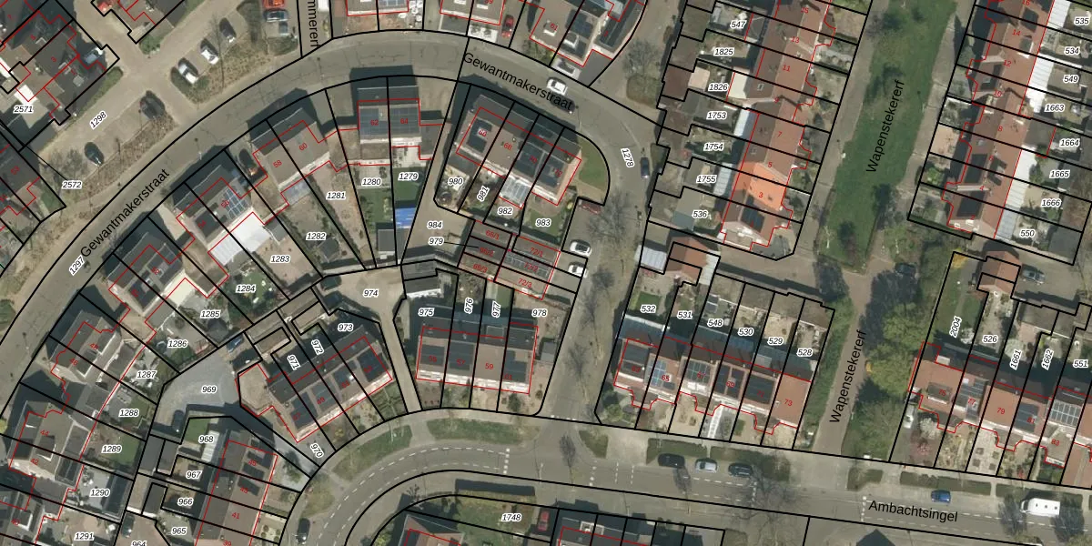 Het perceel waarop Gewantmakerstraat 72-2 staat heeft een oppervlakte van 166 m². Dit is een middelgroot perceel. De perceeloppervlakte wordt geregistreerd door het Kadaster. Gedetailleerde informatie over de maten van dit perceel kunt u vinden in het rapport Kadastrale kaart met maatvoering van Gewantmakerstraat 72-2.