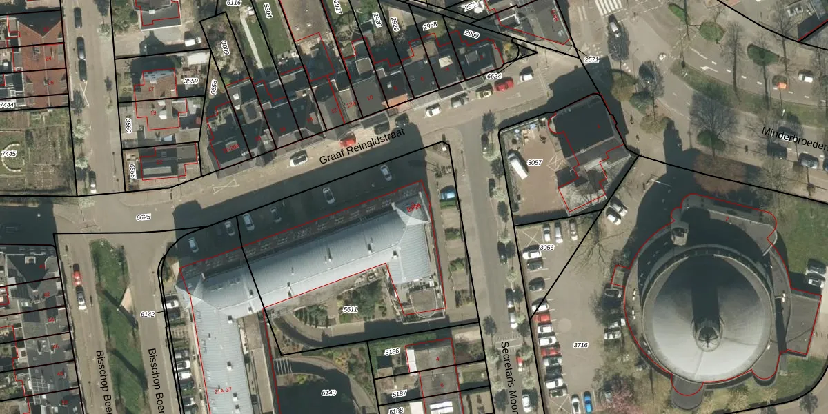 Het perceel waarop Graaf Reinaldstraat 11 staat heeft een oppervlakte van 2055 m². Dit is een zeer groot perceel. De perceeloppervlakte wordt geregistreerd door het Kadaster. Gedetailleerde informatie over de maten van dit perceel kunt u vinden in het rapport Kadastrale kaart met maatvoering van Graaf Reinaldstraat 11.