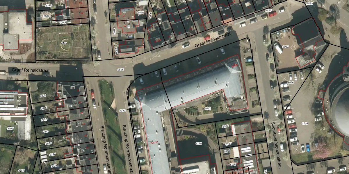 Het perceel waarop Graaf Reinaldstraat 17 staat heeft een oppervlakte van 2055 m². Dit is een zeer groot perceel. De perceeloppervlakte wordt geregistreerd door het Kadaster. Gedetailleerde informatie over de maten van dit perceel kunt u vinden in het rapport Kadastrale kaart met maatvoering van Graaf Reinaldstraat 17.