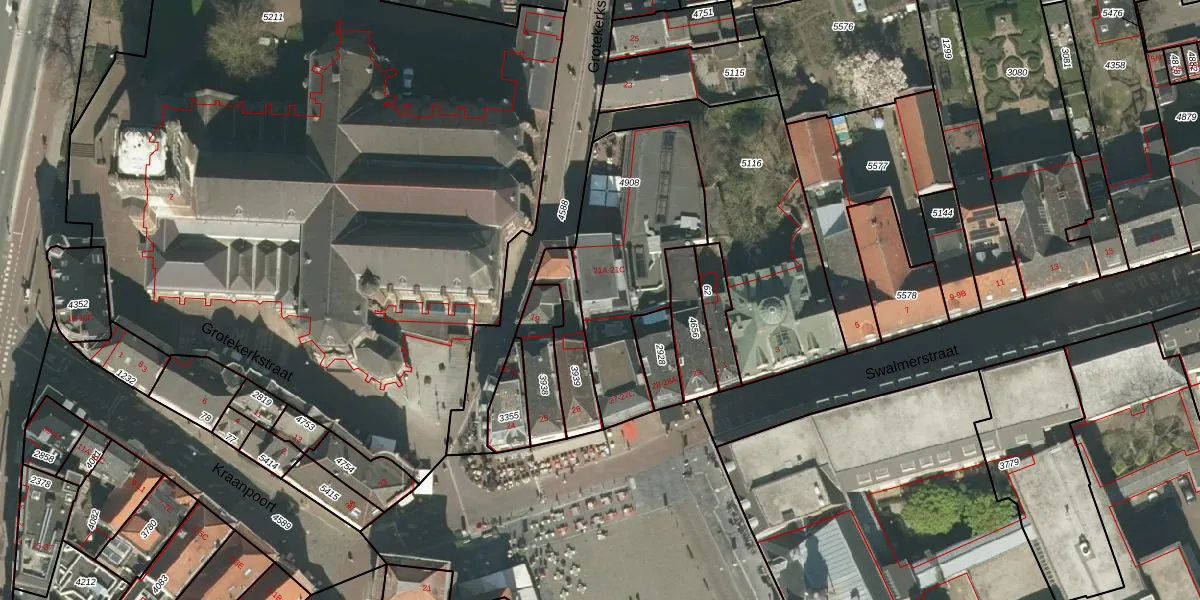 Het perceel waarop Grotekerkstraat 21-C staat heeft een oppervlakte van 695 m². Dit is een groot perceel. De perceeloppervlakte wordt geregistreerd door het Kadaster. Gedetailleerde informatie over de maten van dit perceel kunt u vinden in het rapport Kadastrale kaart met maatvoering van Grotekerkstraat 21-C.
