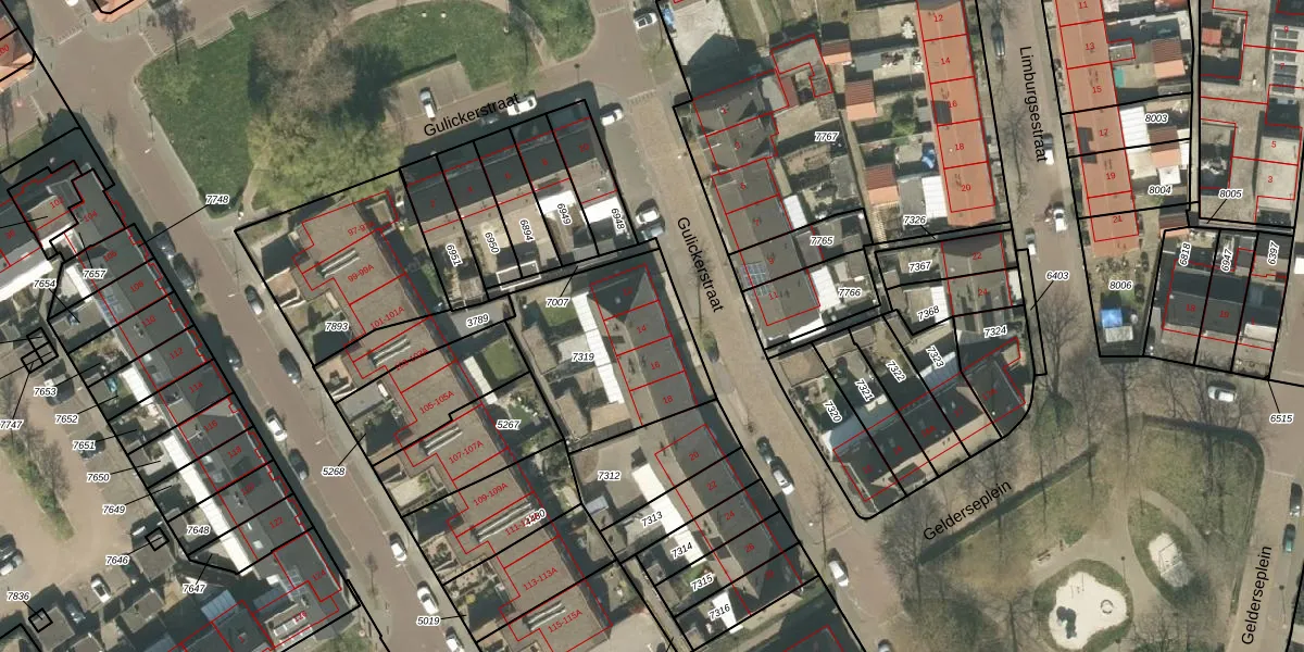 Gulickerstraat 14 is gelegen op kadastraal perceel RMD00B7319. Deze kadastrale aanduiding is uniek en wordt gebruikt door het Kadaster om eigendomsrechten en andere zakelijke rechten vast te leggen. Het perceel maakt onderdeel uit van de kadastrale gemeente Roermond.
