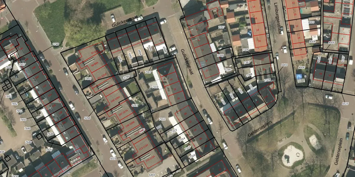 Gulickerstraat 16 is gelegen op kadastraal perceel RMD00B7319. Deze kadastrale aanduiding is uniek en wordt gebruikt door het Kadaster om eigendomsrechten en andere zakelijke rechten vast te leggen. Het perceel maakt onderdeel uit van de kadastrale gemeente Roermond.