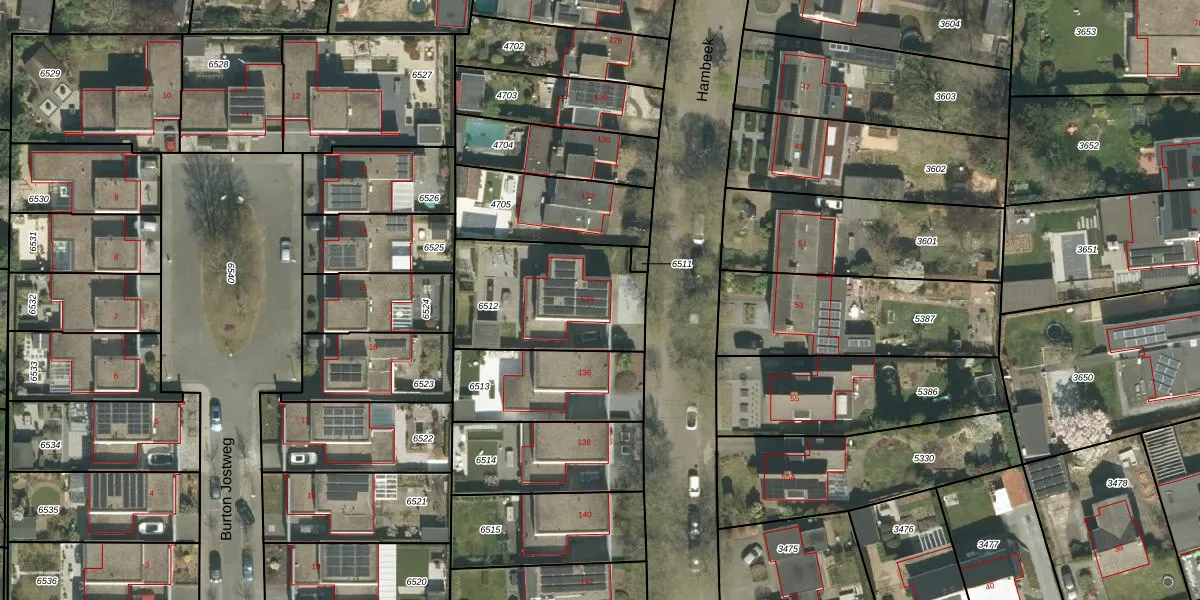Het perceel waarop Hambeek 134 staat heeft een oppervlakte van 561 m². Dit is een groot perceel. De perceeloppervlakte wordt geregistreerd door het Kadaster. Gedetailleerde informatie over de maten van dit perceel kunt u vinden in het rapport Kadastrale kaart met maatvoering van Hambeek 134.