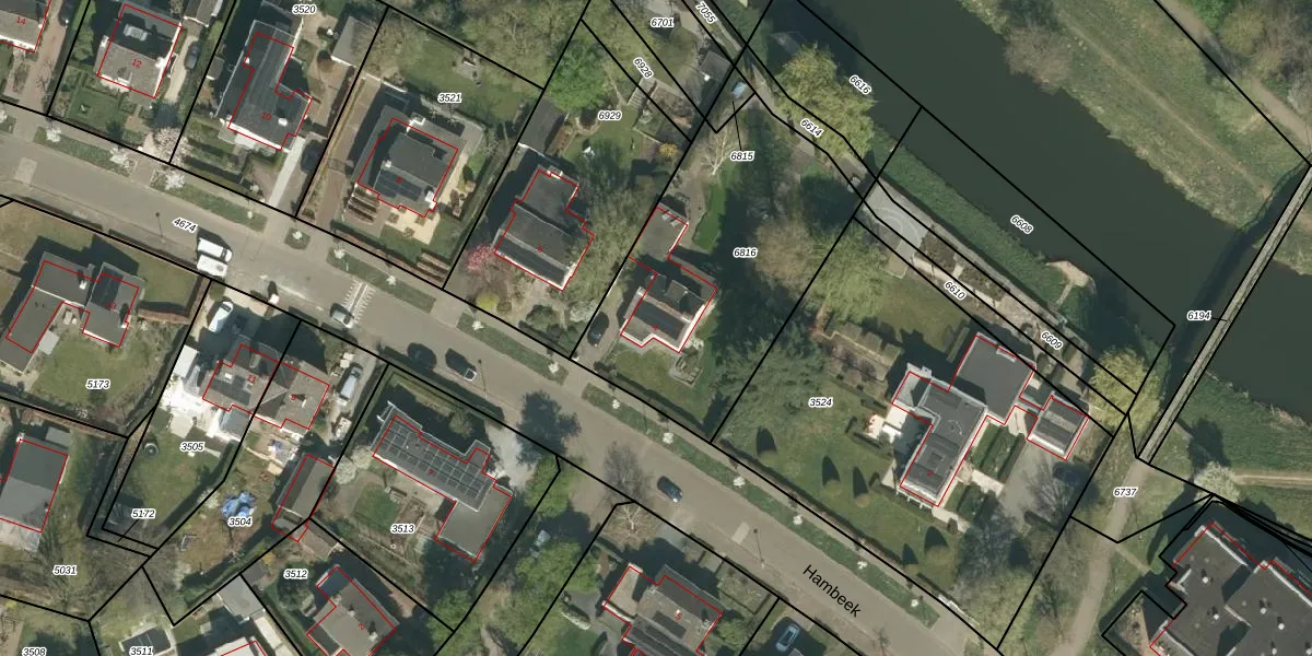 Het perceel waarop Hambeek 4 staat heeft een oppervlakte van 1202 m². Dit is een zeer groot perceel. De perceeloppervlakte wordt geregistreerd door het Kadaster. Gedetailleerde informatie over de maten van dit perceel kunt u vinden in het rapport Kadastrale kaart met maatvoering van Hambeek 4.