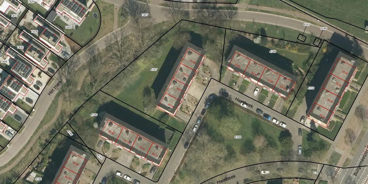Hambeek 56 is gelegen op kadastraal perceel RMD00C4747. Deze kadastrale aanduiding is uniek en wordt gebruikt door het Kadaster om eigendomsrechten en andere zakelijke rechten vast te leggen. Het perceel maakt onderdeel uit van de kadastrale gemeente Roermond.