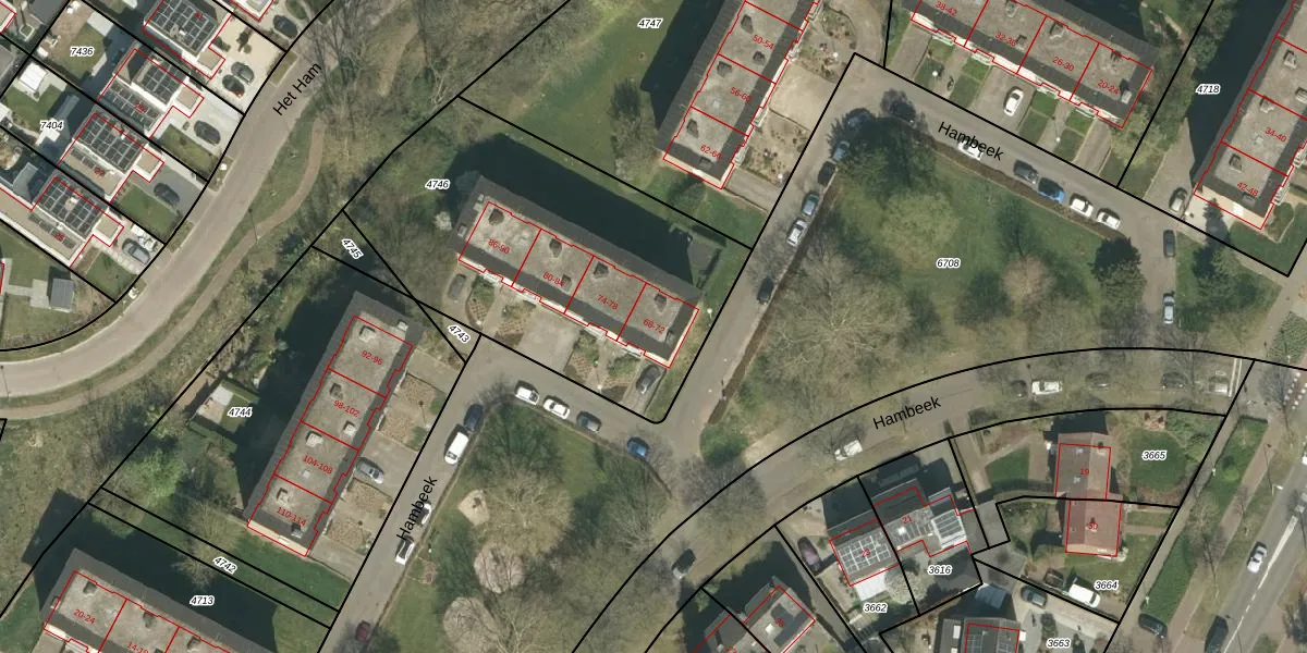 Hambeek 72 is gelegen op kadastraal perceel RMD00C4746. Deze kadastrale aanduiding is uniek en wordt gebruikt door het Kadaster om eigendomsrechten en andere zakelijke rechten vast te leggen. Het perceel maakt onderdeel uit van de kadastrale gemeente Roermond.