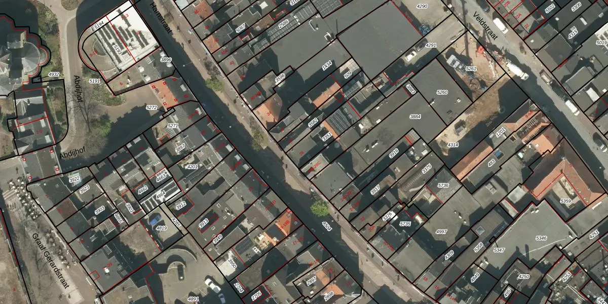 Gebruik de zoekbalk of klik op een perceel voor informatie over de adressen binnen dit perceel.