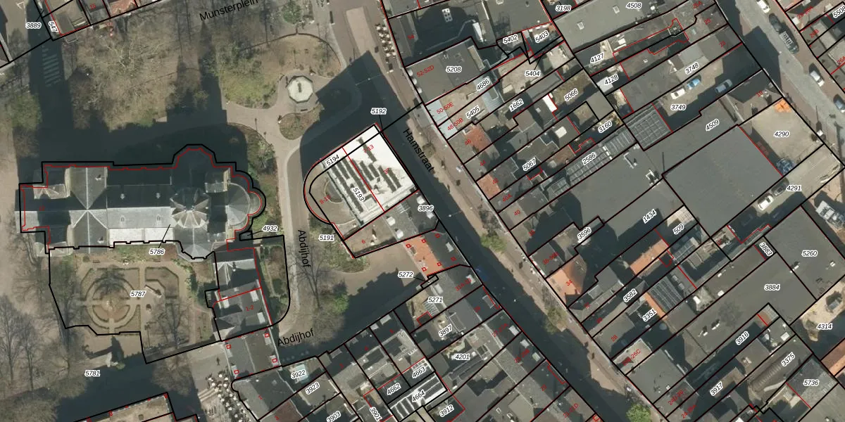 Gebruik de zoekbalk of klik op een perceel voor informatie over de adressen binnen dit perceel.