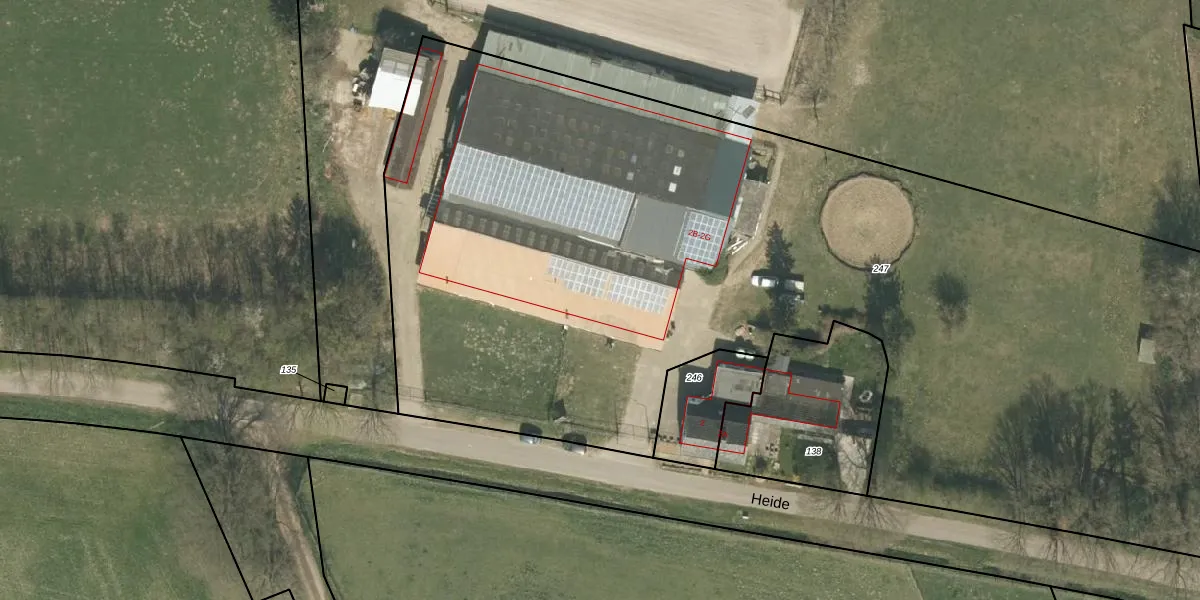 Het perceel waarop Heide 2-F staat heeft een oppervlakte van 7036 m². Dit is een zeer groot perceel. De perceeloppervlakte wordt geregistreerd door het Kadaster. Gedetailleerde informatie over de maten van dit perceel kunt u vinden in het rapport Kadastrale kaart met maatvoering van Heide 2-F.
