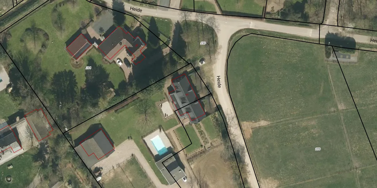 Het perceel waarop Heide 26 staat heeft een oppervlakte van 5539 m². Dit is een zeer groot perceel. De perceeloppervlakte wordt geregistreerd door het Kadaster. Gedetailleerde informatie over de maten van dit perceel kunt u vinden in het rapport Kadastrale kaart met maatvoering van Heide 26.