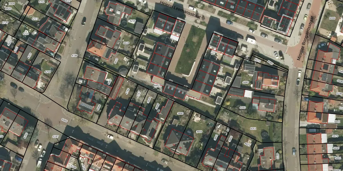 Helena Leemansstraat 13 is gelegen op kadastraal perceel RMD00B8452. Deze kadastrale aanduiding is uniek en wordt gebruikt door het Kadaster om eigendomsrechten en andere zakelijke rechten vast te leggen. Het perceel maakt onderdeel uit van de kadastrale gemeente Roermond.