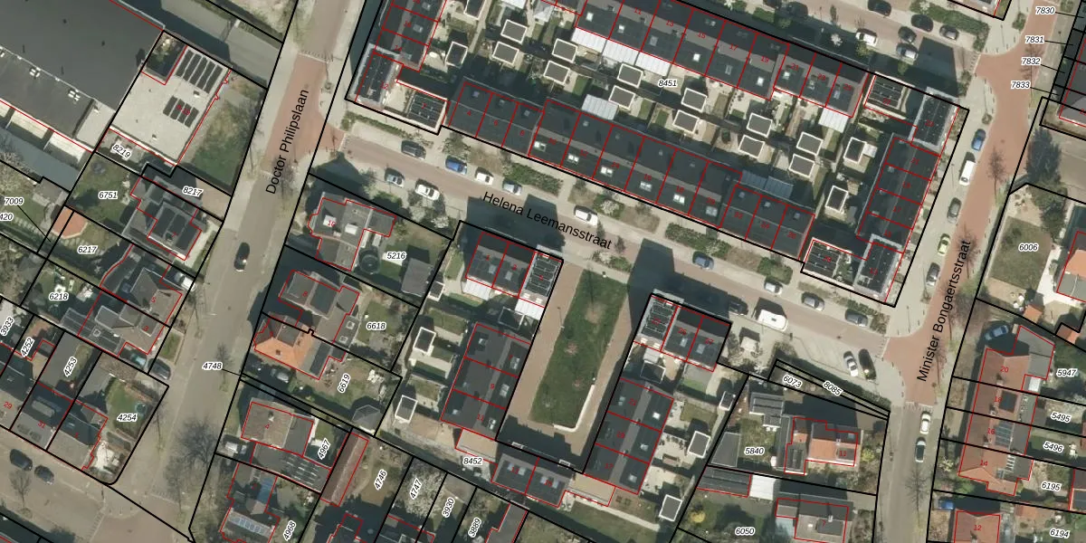 Helena Leemansstraat 5 is gelegen op kadastraal perceel RMD00B8452. Deze kadastrale aanduiding is uniek en wordt gebruikt door het Kadaster om eigendomsrechten en andere zakelijke rechten vast te leggen. Het perceel maakt onderdeel uit van de kadastrale gemeente Roermond.